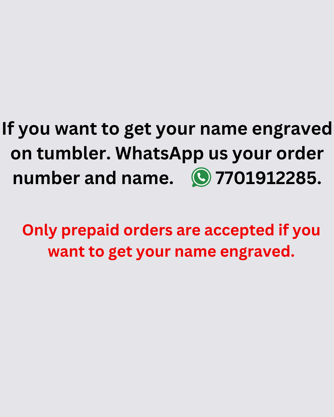 ⚡ If you want to get your name engraved on tumbler. WhatsApp us your order number and name. 7701912285.