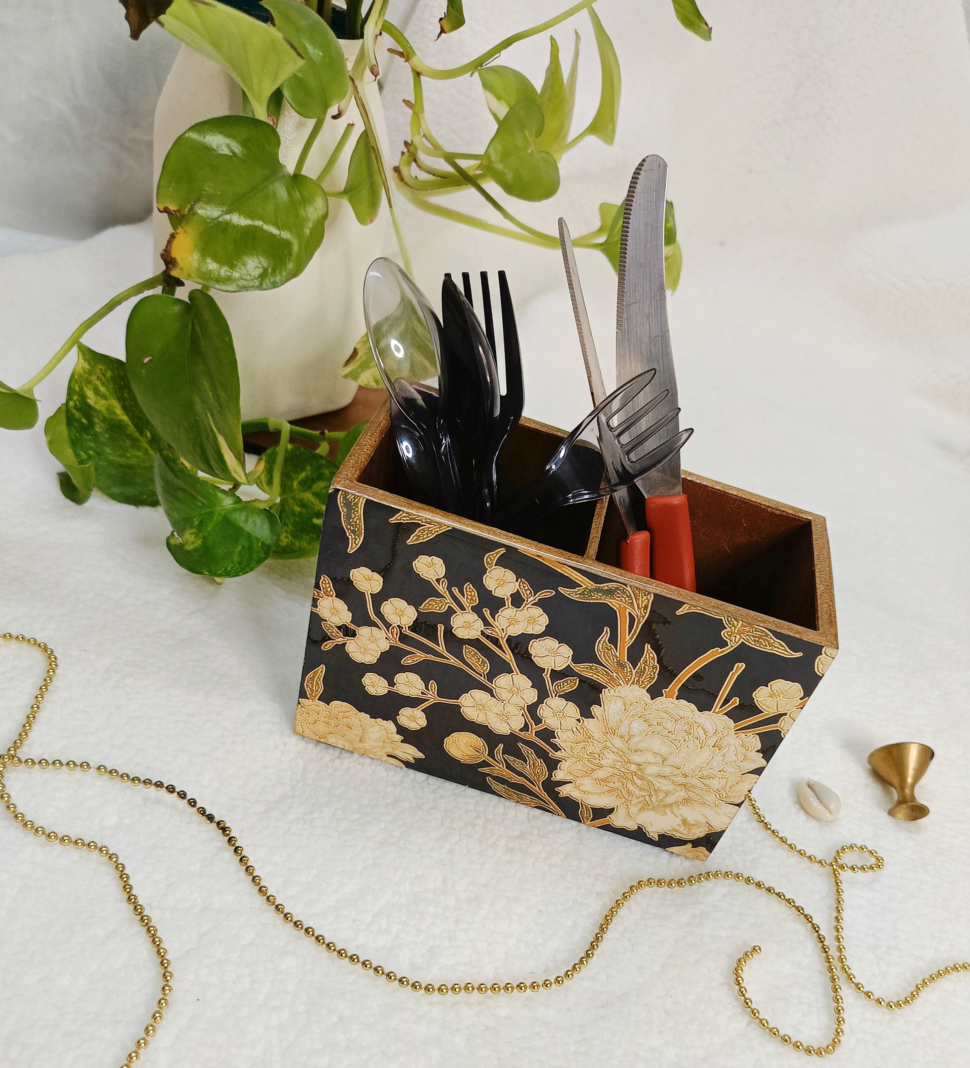 "Organize your cutlery in style with LENDEN's elegant cutlery stand.