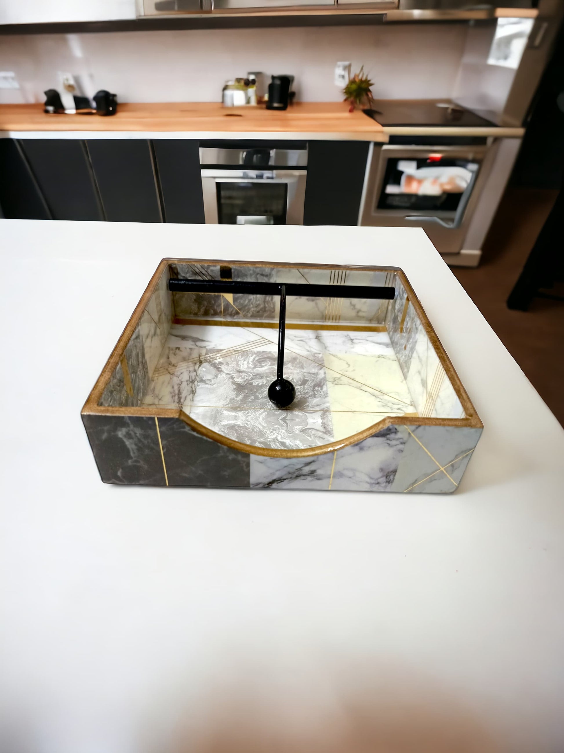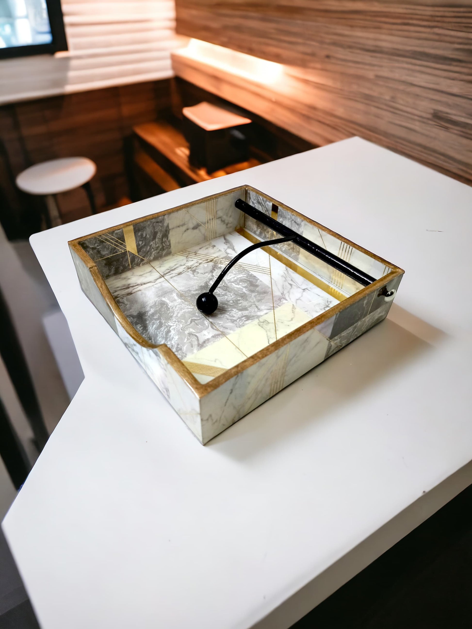 Crafted from premium MDF and finished with a resin coating, this piece showcases a stunning print design complemented by golden lining and borders that enhance its luxurious look. 🏡✨