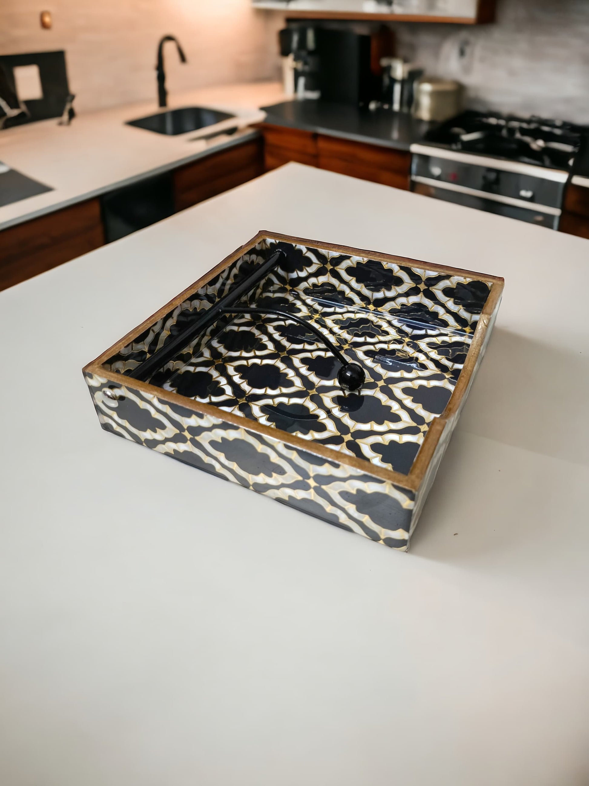 Crafted from premium MDF and finished with a resin coating, this piece showcases a stunning print design complemented by golden lining and borders that enhance its luxurious look. 🏡✨